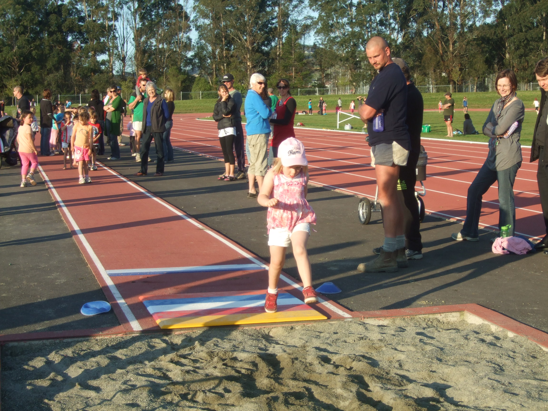 Poppy LOVED the fun sign-up night at Richmond Athletics this week…. she met up with lots of friends and had a blast running around the amazing track. The long jump was a particular favourite. A professional photographer (Blair Hall) was there and captured these two shots: